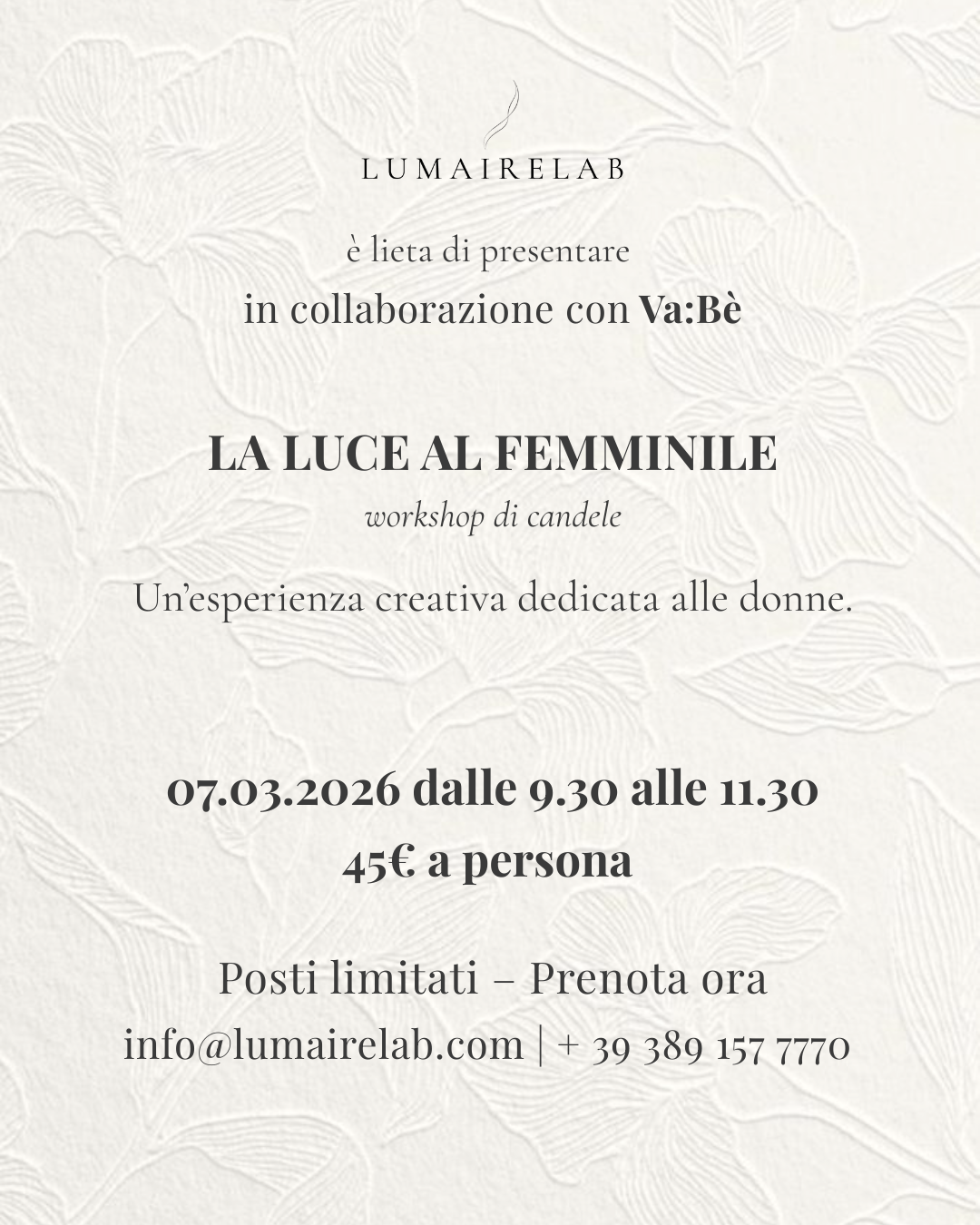 Scrivimi direttamente a info@lumairelab.com oppure compila il modulo sotto.